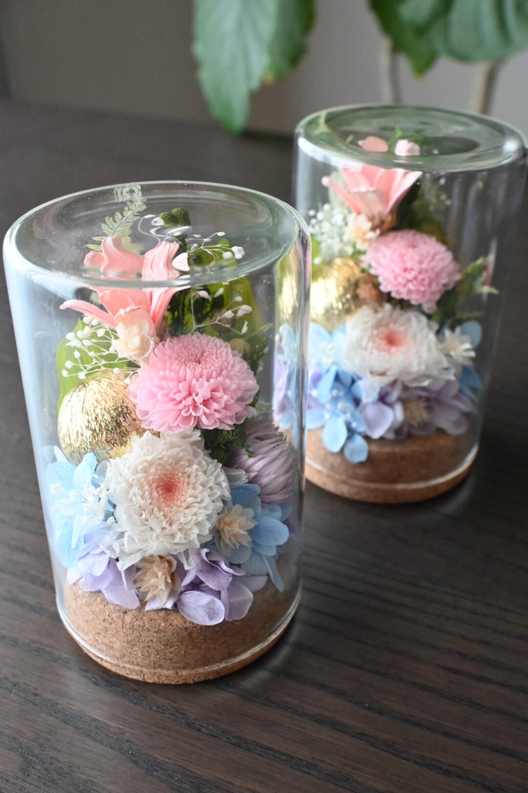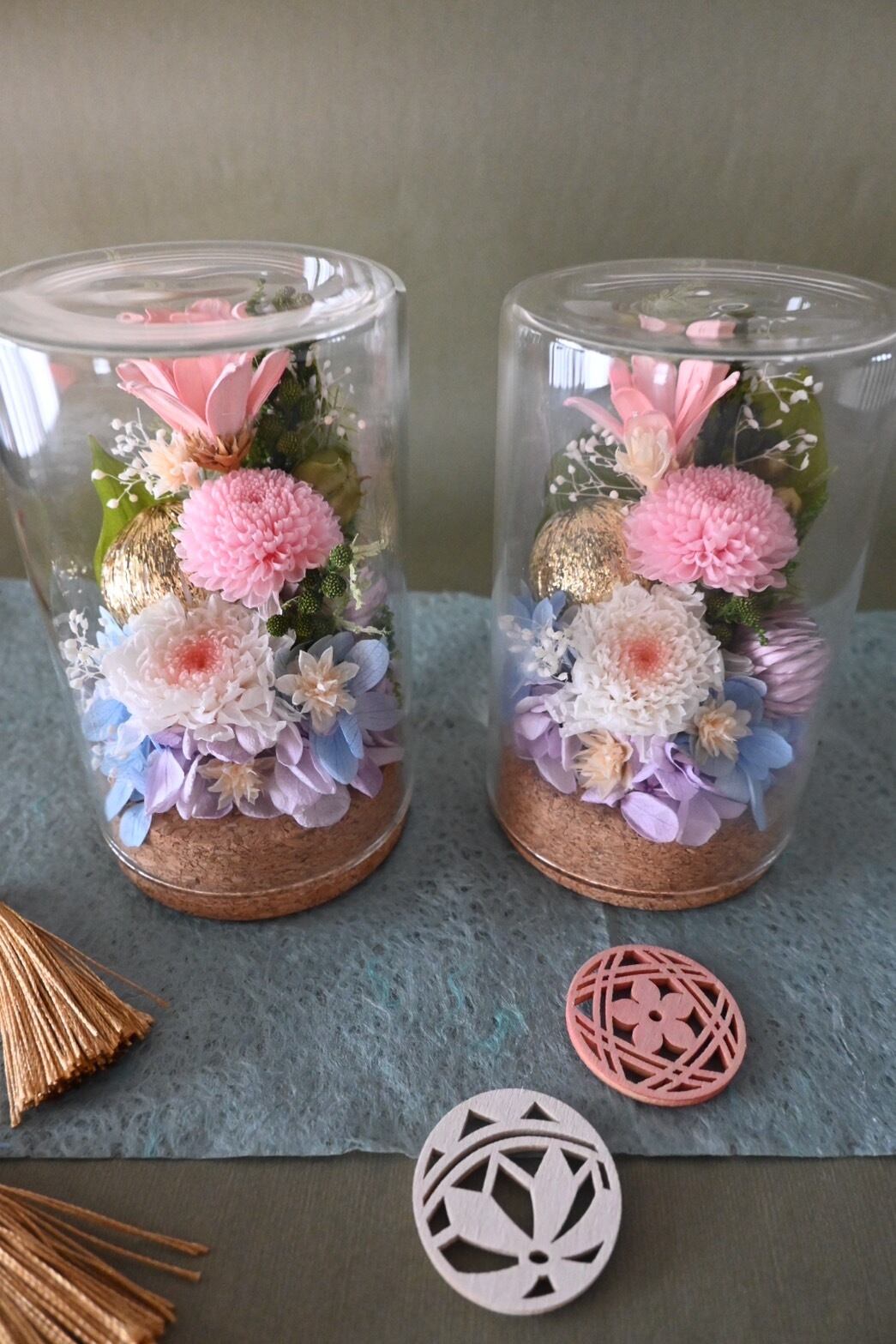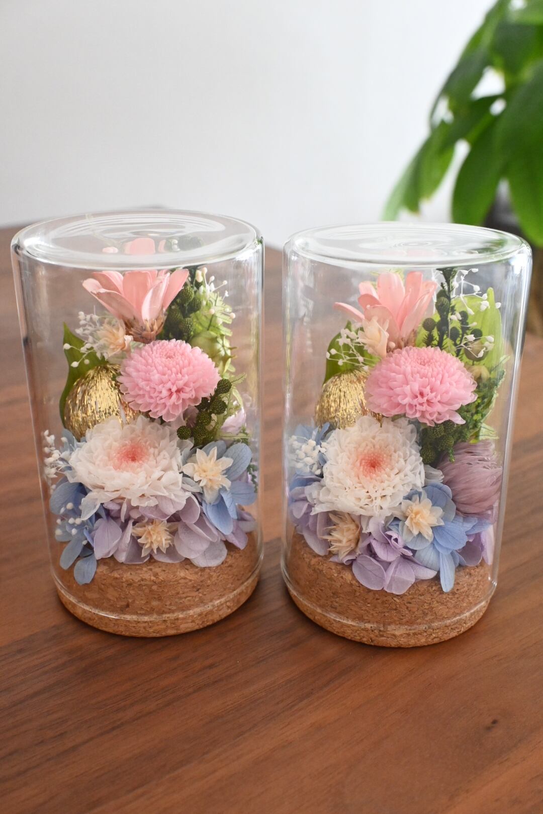 1つだけ置いても、対で飾っても。さりげないサイズ感で場所を取りません。またボトルの中にお花があるので、埃や傷の心配がなく長く飾って頂けます。