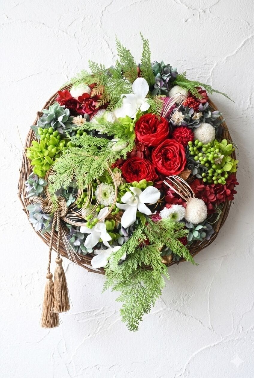 壁掛けやドアリースとして、和の空間を演出してくれます。お正月飾りにもオススメです。
